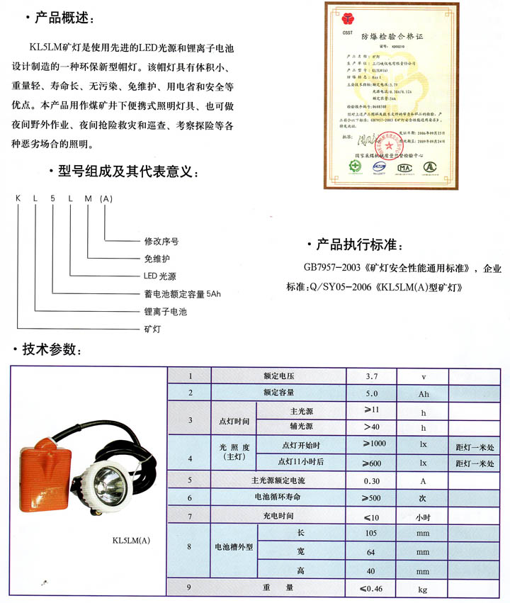 • KL5ML(A)型礦燈 產(chǎn)品型號(hào):KL5ML(A)型礦燈